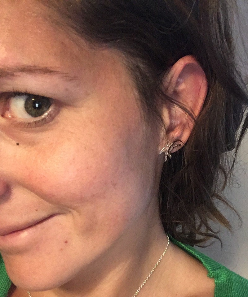 Beautiful earrings! Delicate but almost impossible for small hands to grab and pull, which is essential!