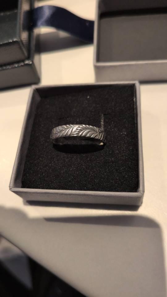 Inspired by the graceful leaves of the rowan tree, this sterling silver ring celebrates the quiet strength of nature. The detailed leaf pattern wraps gently around the band, finished with a soft oxidisation that highlights every vein and contour.